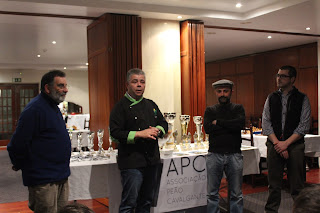 Na foto acima,( esquerda ), da esquerda para a direita, José Cavadas, diretor e árbitro do torneio, Chefe Carlos Silva, César Rodrigues e Sérgio Gomes. Na foto da direita, os participantes no torneio jovem. Este torneio realizou-se no Hotel Santa Maria, em Alcobaça, no passado fim de semana, a 23 e 24 de Janeiro de 2016, para jogadores com Elo inferior a 2200, disputando-se em 5 rondas, no sistema suiço. O ritmo de jogo foi de 60 minutos a cada jogador para terminar a partida, mais 30 segundos por lance desde o início do jogo. O vencedor foi o angolano David Silva, IM, da Associação Peão Cavalgante, com 4.5 pontos. Em segundo lugar classificou-se Miguel Fernandes, Sub 20, da AA Coimbra, e em terceiro o espanhol, Cristobal Rubirosa, da Associação Peão Cavalgante, ambos com 4 pontos. Eis a classificação final dos 28 participantes, com tabela cruzada dos resultados. Por equipas ganhou a Associação Peão Cavalgante, com 14.5 pontos ; em segundo, classificou-se o Corvos Lis, com 10.5 e em terceiro, A.A. Coimbra, com 10 pontos. Realizou-se também um torneio jovem, com 14 participantes, disputando-se em 5 rondas, no sistema suiço, sendo vencedor Gui Castro,da AA Coimbra, com 5 pontos ; em segundo, classificou-se Cristobal Fernandez, com 4 pontos e em terceiro, André Ramos, com 3.5 , ambos da Associação Peão Cavalgante.